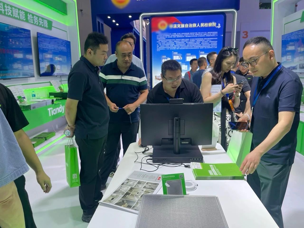 從高效實(shí)用的硬件產(chǎn)品再到極致智能的軟件系統(tǒng),均受到了甲方領(lǐng)導(dǎo)、行業(yè)人士的關(guān)注,他們駐足展位,近距離體驗(yàn)天地偉業(yè)全自研的產(chǎn)品與技術(shù),與現(xiàn)場(chǎng)講解人員共同探討行業(yè)發(fā)展趨勢(shì)與政法智能化技術(shù)的未來。